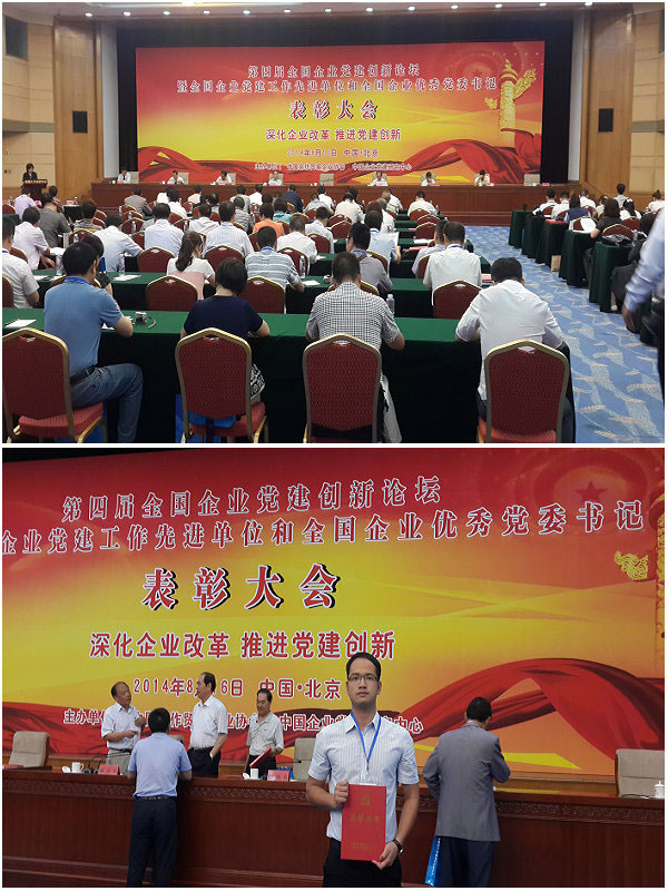2014年8月15日,“全國企業(yè)黨建創(chuàng)新論壇暨表彰大會(huì)”在北京全國人大會(huì)議中心勝利舉行。全國人大常委會(huì)原副委員長、黨組副書記王漢斌、中共中央組織部原部長張全景等重要嘉賓領(lǐng)導(dǎo)出席本次論壇。我司作為全國企業(yè)黨建工作代表受邀出席本次會(huì)議,并獲得“2014年度全國企業(yè)黨建工作先進(jìn)單位”榮譽(yù)稱號,黨支部書記張宏新獲得“2014全國企業(yè)黨建工作先進(jìn)工作者”榮譽(yù)!這是對我司過去重視企業(yè)黨建工作,把公司發(fā)展結(jié)合黨建創(chuàng)新,深化企業(yè)改革重要成果!